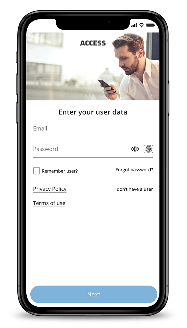to the app through the use of a password, face I.D, and fingerprints