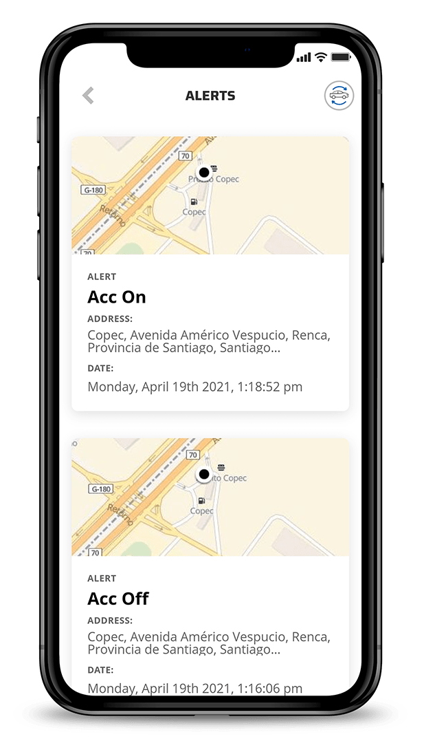 Ongoing trips, Excess of speed, Battery levels, and more